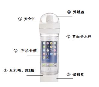 手機族強力推薦,儲物盒杯底,舒適的運動款提手,手機太空倉更好的保護你的手機,精準的插口預留位置.I-cup不僅是水杯,更是一種全新的生活體驗,可以放零錢,放數據線充電,可以聽音樂,還可以放手機,功能強大,備受現代時尚達人的青睞.
