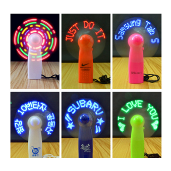 這款手柄迷你閃字風扇,LED發光閃字風扇,帶LED燈.可以顯示任何語言,如英文、中文、德文、韓文以及各種制定的圖案、數字、符號等.(如:I MISS YOU OHMYGOD)還有這些符號:= /× -* !$ & @ # ? ¢ ,。’ ;:“ ” ().另外還可做各種不同顏色的燈色效果:紅燈、黃燈、橙色燈、藍燈、綠燈外殼可印制客戶的LOGO,外出攜帶方便,小巧精致,很適合促銷,推廣的贈品哦!