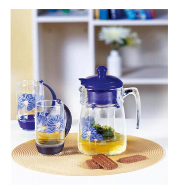 這款涼水壺還是套裝的形式,一個壺,4個玻璃杯,既是涼水壺也是飲料果汁的好容器.涼水壺是玻璃材質,無孔不滲透材質,容易清洗,不遺留殘漬和異味,健康飲食,100%食品安全,色彩時尚,組合新穎,還可適用于洗碗機,冰箱,可滿足日常生活的多種需求同時也是餐桌玻璃器皿行業領導者.
