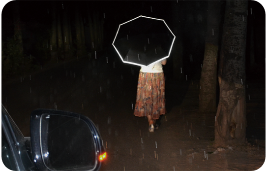汽車安全傘在傘的邊沿設有反光條,在雨天或晚上視線不好的情況下,反光條在車燈的照射下會產生反射光,讓過往車輛能及時發現雨傘使用者,達到保護使用者的目的,使其避免造成不必要的傷害。