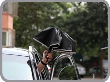 汽車安全傘設有自開自收功能,讓使用者在雨天使用傘時,不會被雨水淋濕。